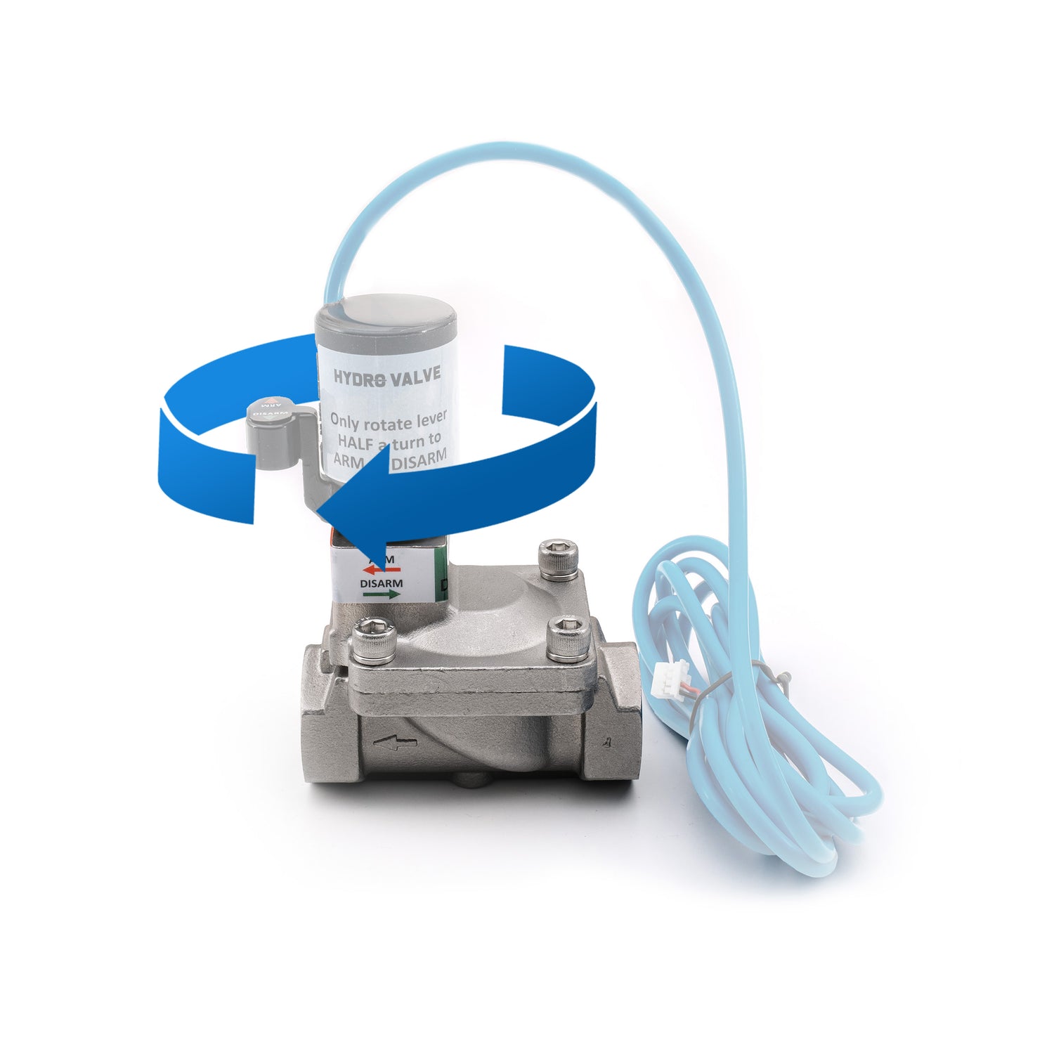 Hydro Valve is a solenoid valve with a sensor that automatically shuts off your water supply when water is detected in your safety tray.